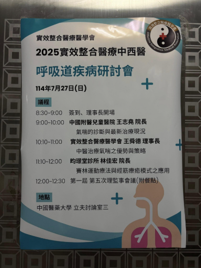 實效整合醫療醫學會學術研討會演講2025.7.27實效整合醫療醫學會學術研討會演講 放假日,中醫師們都在忙什麼? 實效整合醫療醫學會的中醫師們忙著接受新知,精進醫術! 我們的林佳宏院長,這個禮拜天也把賽林運動在臨床的療法應用分享給來自台灣各地的中醫同道們,會後交流討論也很熱烈喔! https://selin-yunjing.com/wp-content/uploads/2025/11/1113-1封面.jpg 600 900 agent30 /wp-content/uploads/2024/11/logo-1.png agent302025-07-27 00:00:322025-11-13 17:05:36實效整合醫療醫學會學術研討會演講